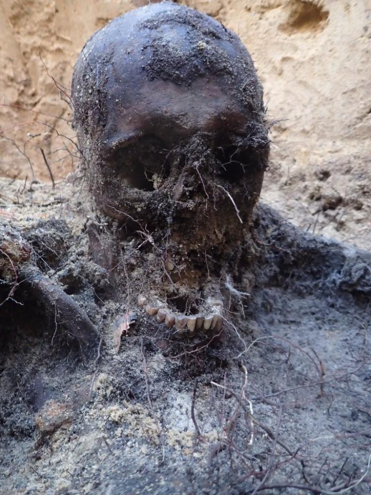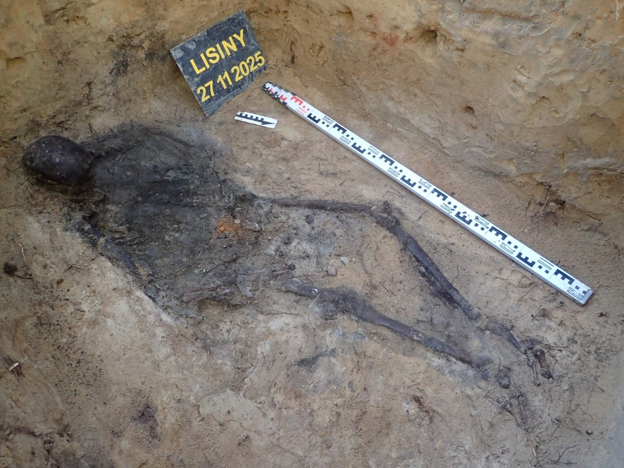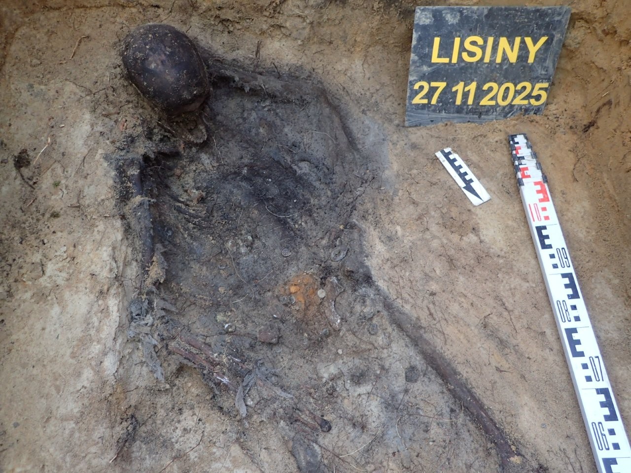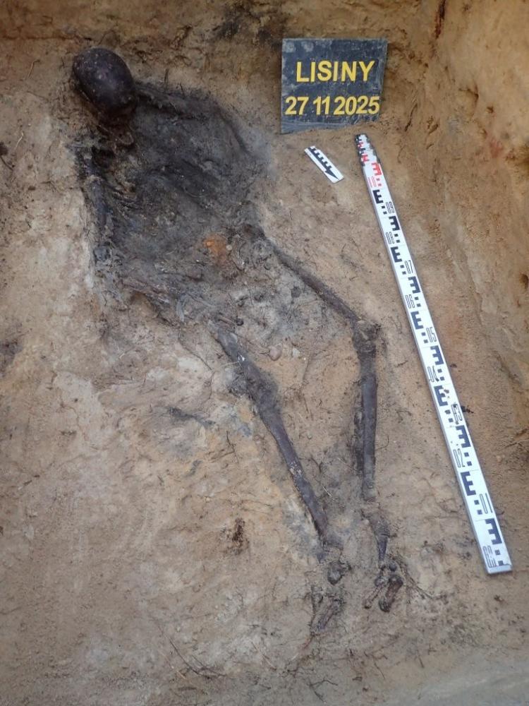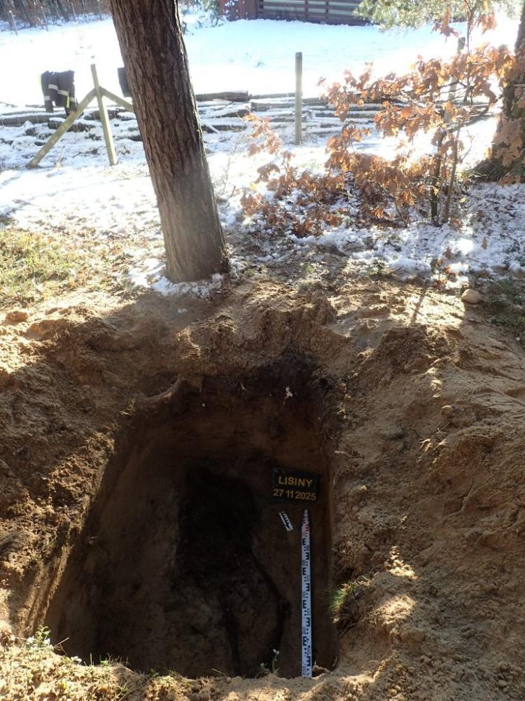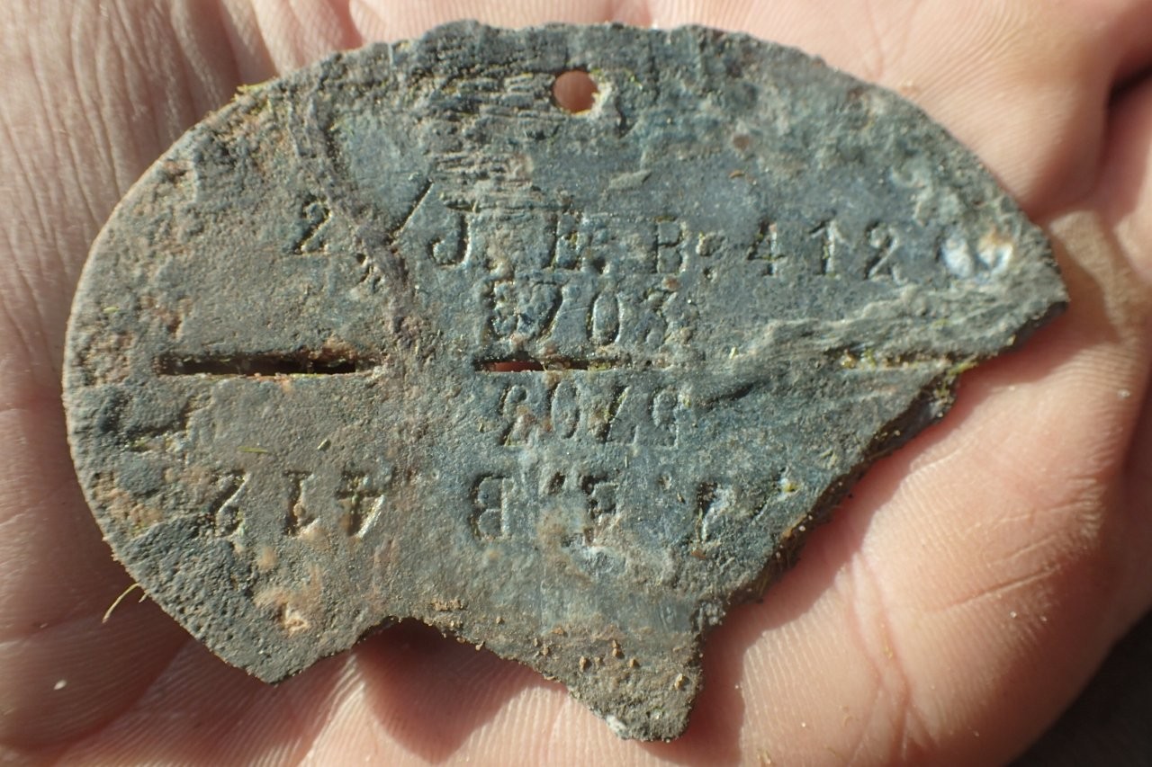 W dniu 27 listopada 2025 r. prowadziliśmy prace archeologiczno-ekshumacyjne w pobliżu miejscowości Kamionka (obręb Lisiny), gm. Śliwice (woj. kujawsko-pomorskie). Z leśnej mogiły podjęliśmy szczątki żołnierza niemieckiego poległego w 1945 r. W grobie odkryliśmy nieprzełamany znak tożsamości.