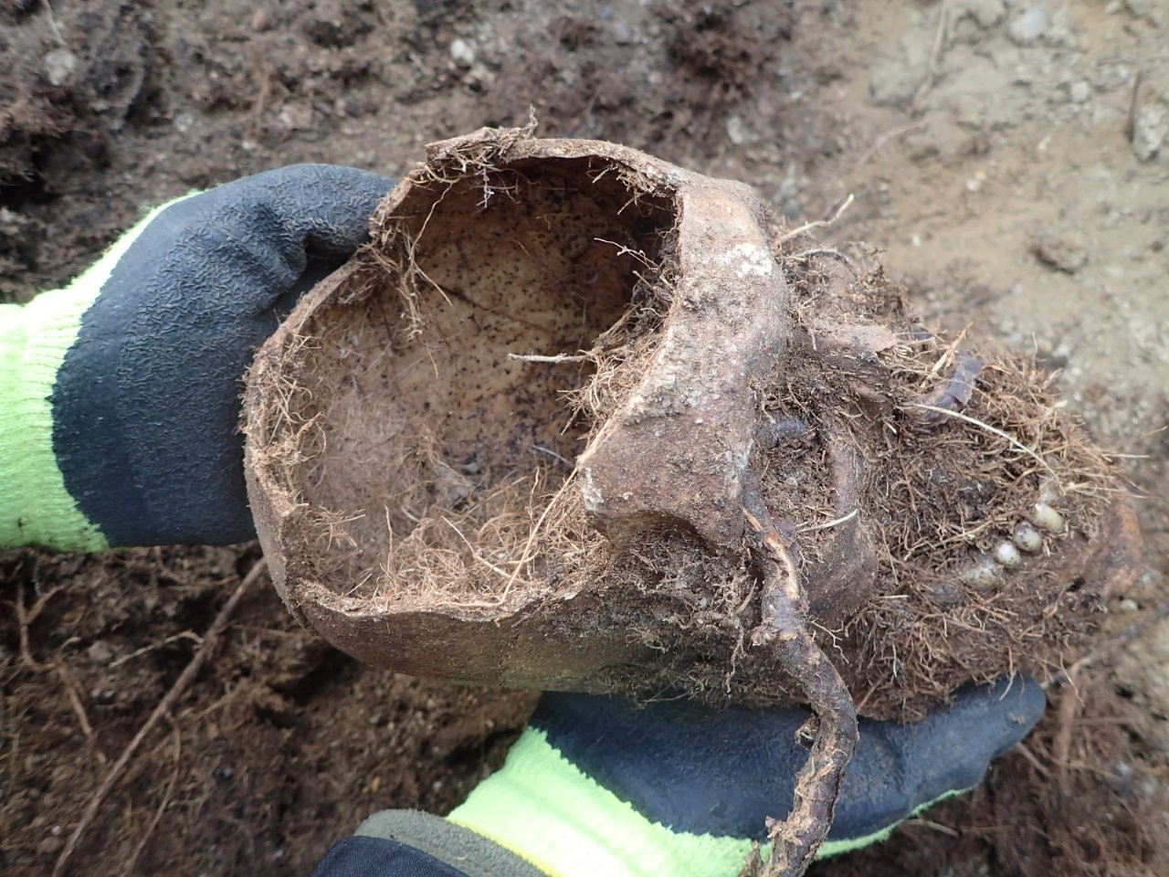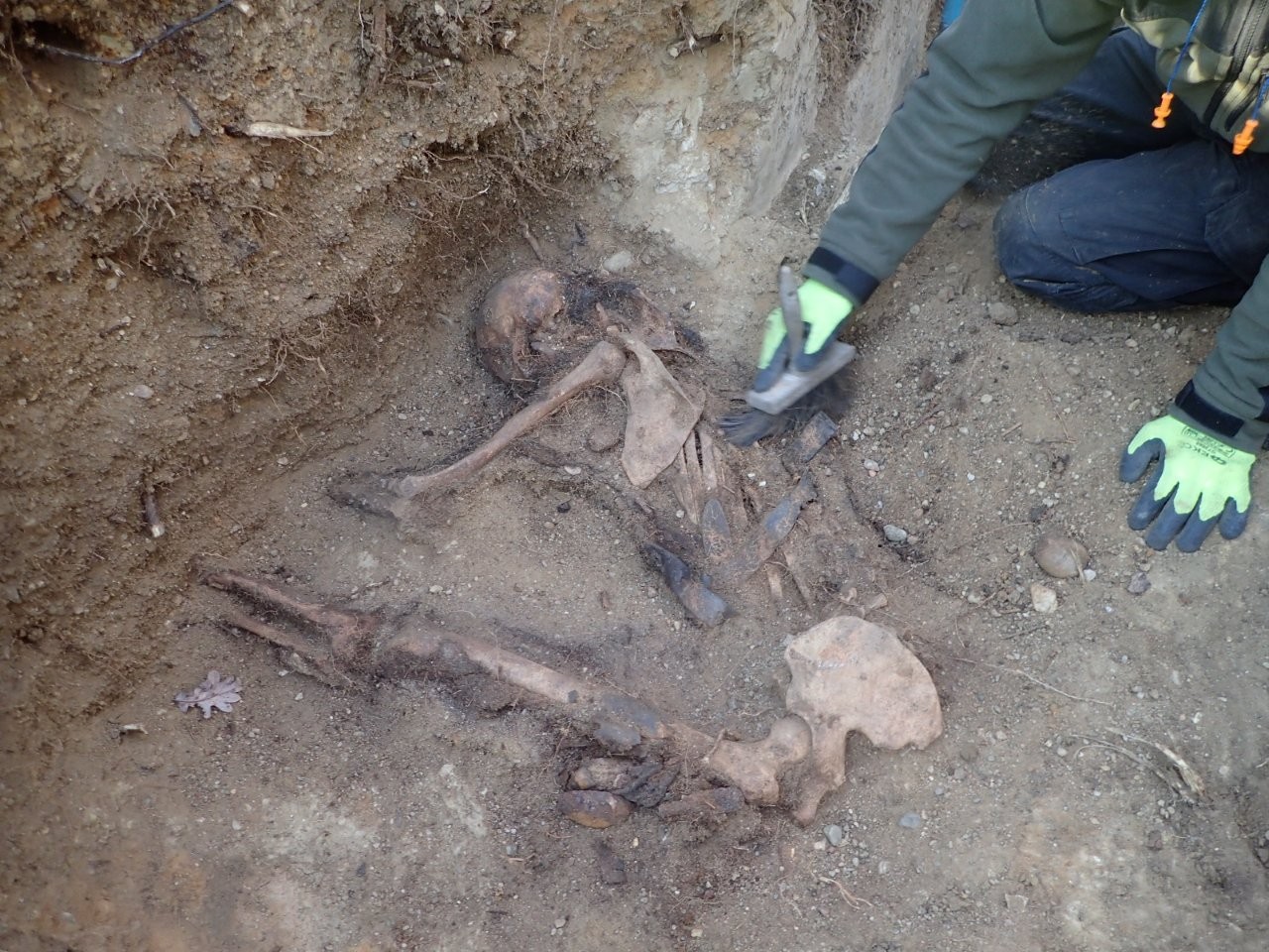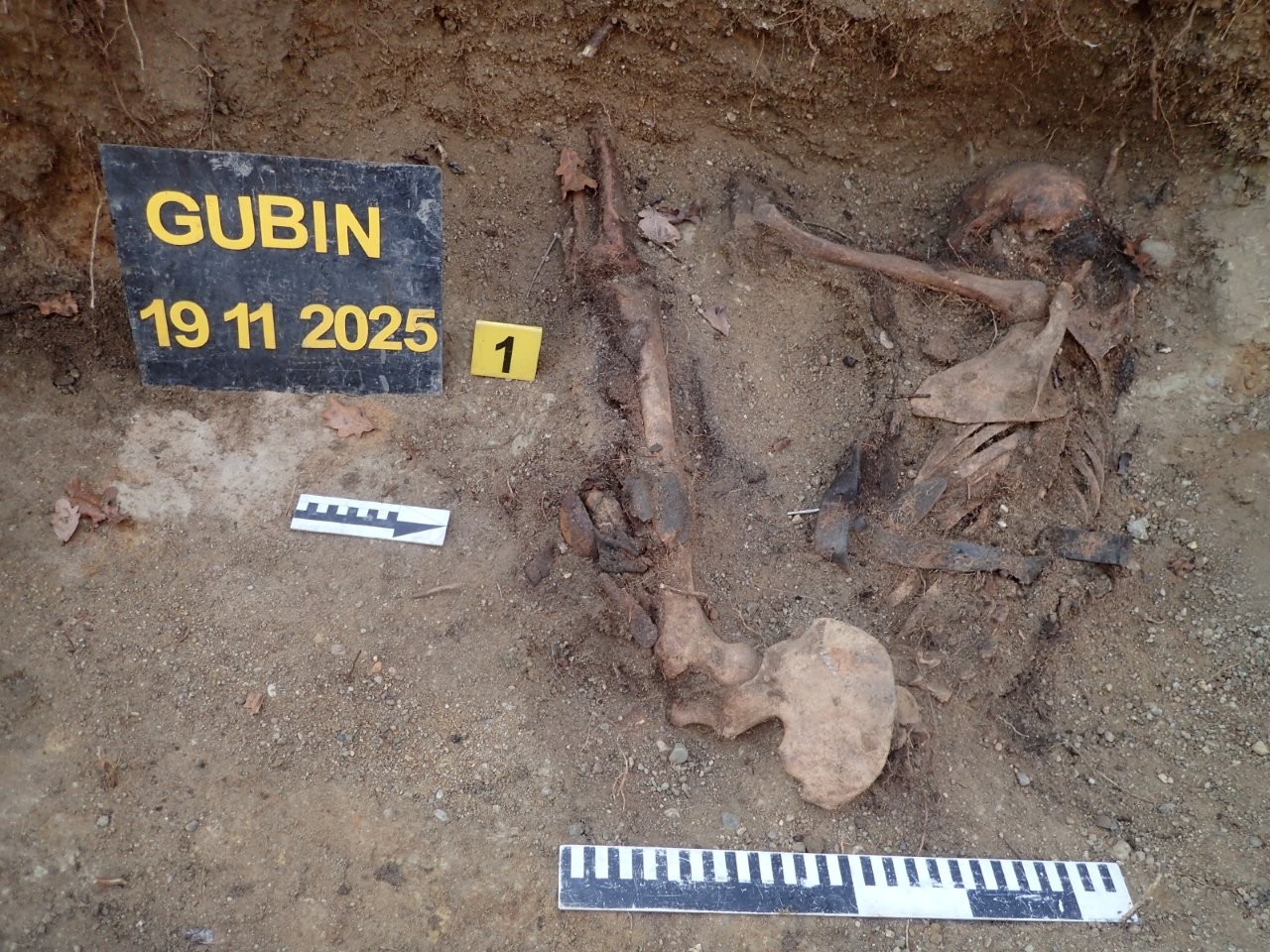 Gubińskie Wzgórze Wolfa odsłoniło kolejną tajemnicę. W trakcie walk o miasto w 1945 r. miejsce to stanowiło jeden z głównych punktów obrony. Na stokach wzniesienia znajdują się liczne pozostałości fortyfikacji polowych, w obrębie których wciąż odnajdywane są szczątki poległych. W dniu 19 listopada 2025 r. przeprowadziliśmy kolejne poszukiwania na tym obszarze. W ich efekcie natrafiliśmy na szczątki dwóch niemieckich żołnierzy, które spoczywały na dnie transzei okalającej wzgórze. Niestety nie odnaleźliśmy przy nich znaków tożsamości.