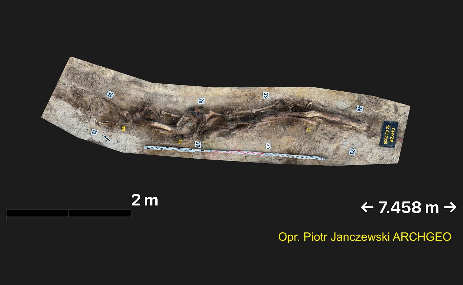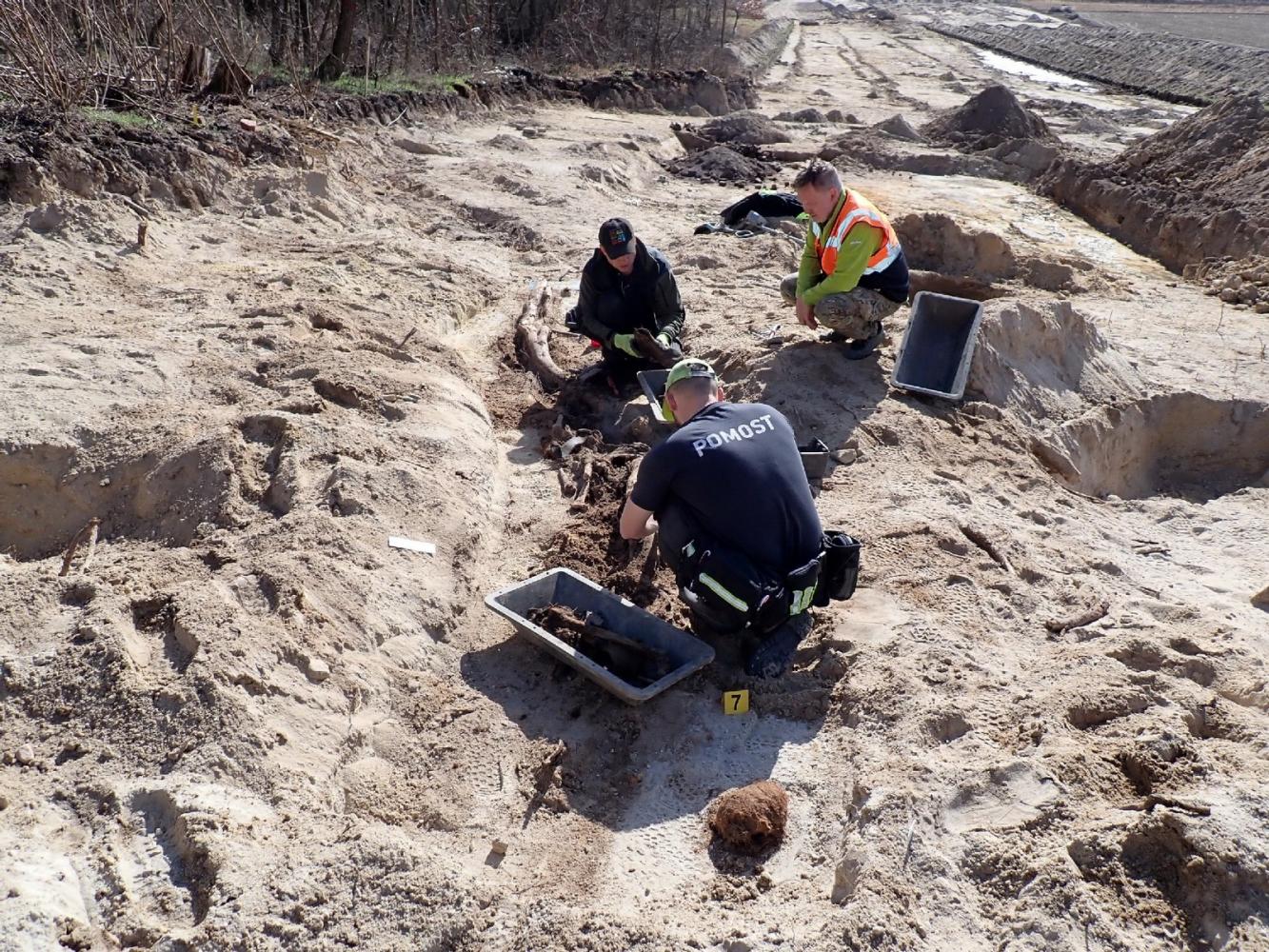 Sprawowanie właściwego nadzoru archeologicznego nad inwestycjami jest niezwykle ważne. Dzięki obecności specjalistów podczas prac ziemnych możliwe jest uratowanie i zbadanie śladów przeszłości. Modelowe postępowanie wszystkich zainteresowanych stron pozwoliło podczas budowy obwodnicy Krosna Odrzańskiego w ciągu DK29 odkryć i zbadać pochówki 7 żołnierzy niemieckich. W obrębie Chyże, na skraju planowanego pasa drogowego, po zdjęciu warstwy humusu ukazał się zarys transzei. W jej wnętrzu natrafiono na silnie przerośnięte korzeniami szczątki ludzkie. W wyniku przeprowadzonych badań archeologicznych odnalezione zostały liczne przedmioty towarzyszące poległym, w tym 4 nieprzełamane nieśmiertelniki. Żołnierze ci zginęli w 1945 roku w trakcie intensywnych walk w okolicach miejscowości Gostchorze. Zostali pochowani najprawdopodobniej przez okoliczną ludność. Ciała zostały zebrane i złożone w płytkim okopie znajdującym się przy nieistniejących już zabudowaniach. Na podstawie odkrytych żołnierskich znaków tożsamości możliwe będzie ustalenie personaliów poległych i zawiadomienie ich rodzin o odnalezieniu bliskich. Za życzliwą pomoc i wzorową współpracę serdecznie dziękujemy firmom archeologicznym „ArchGeo” Piotra Janczewskiego i „Galty” Pawła Micyka.