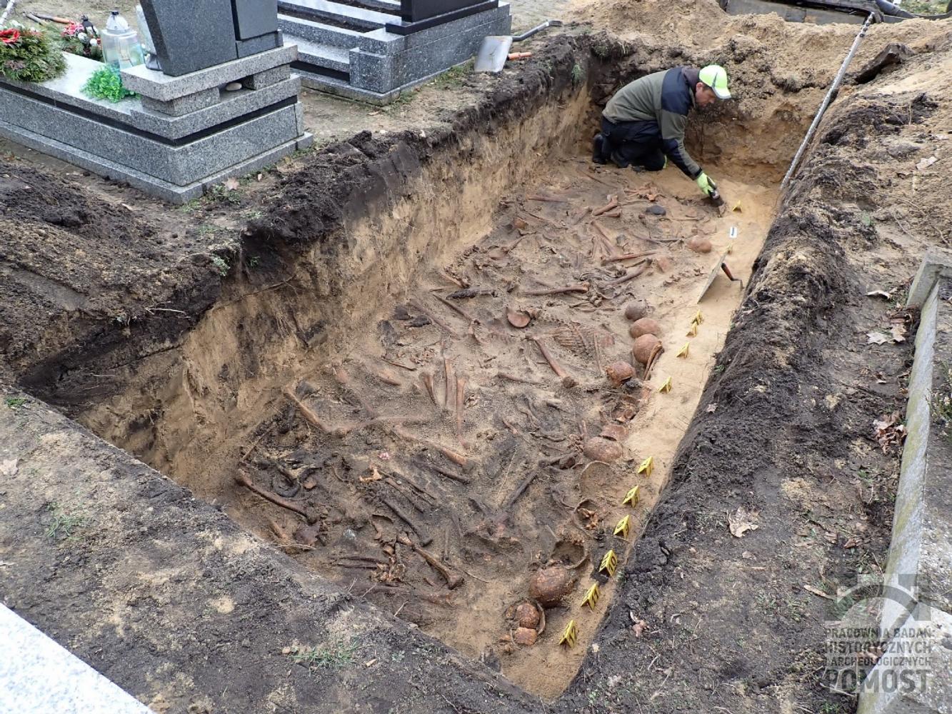 Niekiedy groby wojenne mają charakter wtórny. Oznacza to, że szczątki przeniesiono z pierwotnego miejsca pochówku i złożono ponownie w innej, najczęściej zbiorowej mogile. Zmarli i polegli w wyniku działań wojennych często byli grzebani w pośpiechu, w prowizorycznych grobach. Po wojnie podejmowano działania mające na celu zebranie i przeniesienie szczątków ofiar. Taka sytuacja miała miejsce w opolskiej wsi Osowiec. W miesiącach po przejściu frontu mieszkańcy miejscowości odkrywali doraźne pochówki i przenosili ciała na cmentarz parafialny. Według przekazów ustnych w dwóch oznaczonych grobach spoczywać miało 7 żołnierzy. Nasze badania natomiast ujawniły szczątki 32 żołnierzy niemieckich, przy których odnaleźliśmy 5 nieprzełamanych nieśmiertelników. Ciała były przenoszone w różnych stadiach rozkładu, co spowodowało, iż tylko nieliczne szkielety zachowały się w porządku anatomicznym. Polegli zostaną niebawem pochowani na Cmentarzu Wojennym w Nadolicach Wielkich i przynajmniej 5 rodzin otrzyma informacje o losie swoich bliskich.