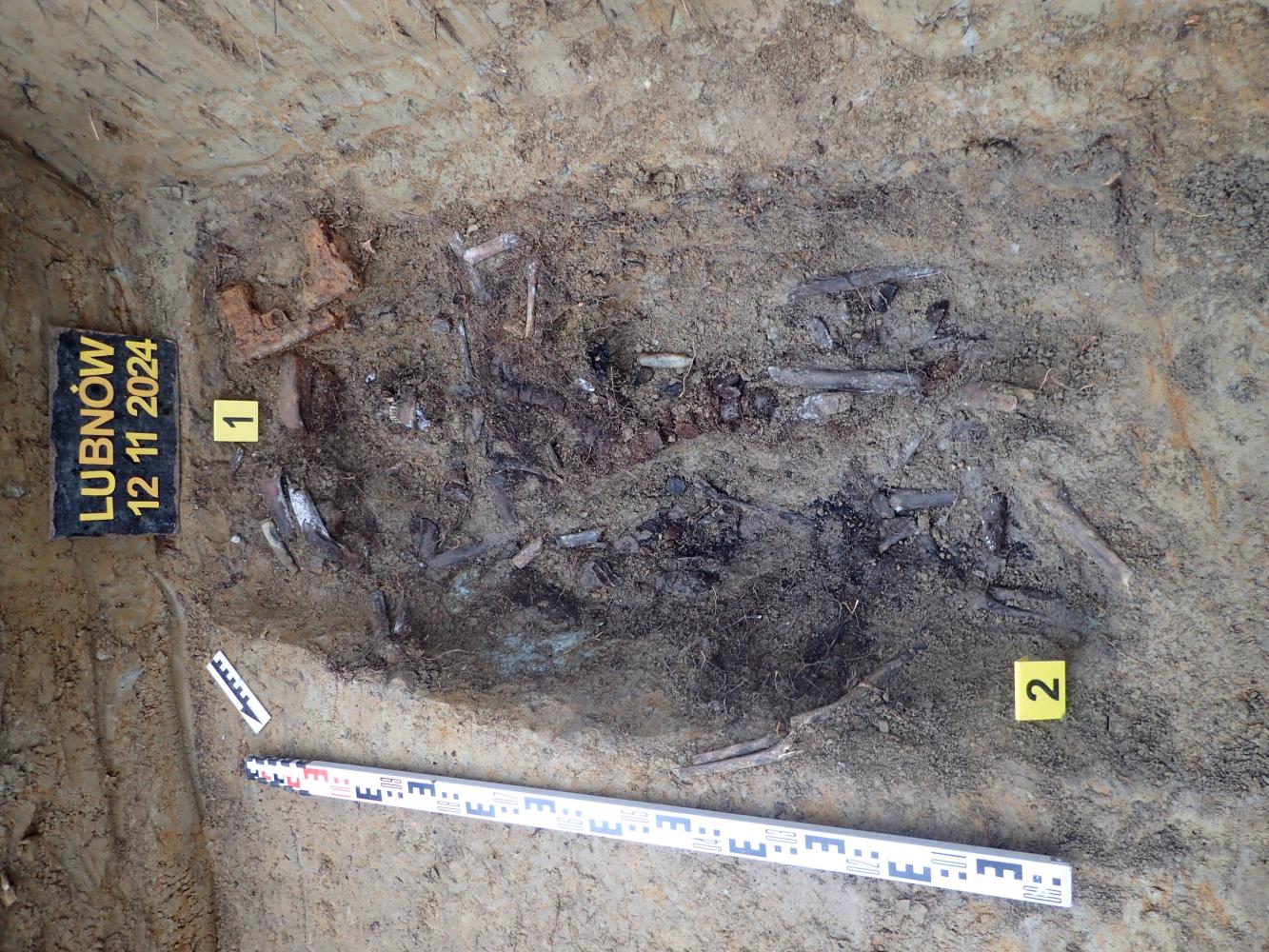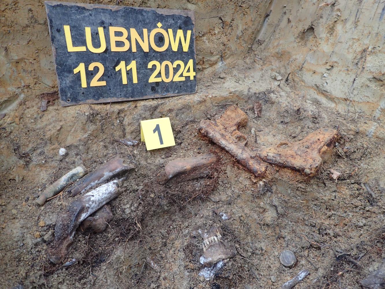 W dniu 12 listopada 2024 r. prowadziliśmy prace sondażowe w Lubnowie, gm. Ziębice (woj. dolnośląskie). Przedmiotem naszych zainteresowań był oznaczony kamiennym kopcem i drewnianym krzyżem grób wojenny. Według relacji mieszkańców Lubnowa pochowano w nim najprawdopodobniej dwóch niemieckich lotników poległych w 1945 r. Ich samolot miał się rozbić na pobliskim polu, a jego szczątki przez pewien czas zalegały na jego powierzchni.
