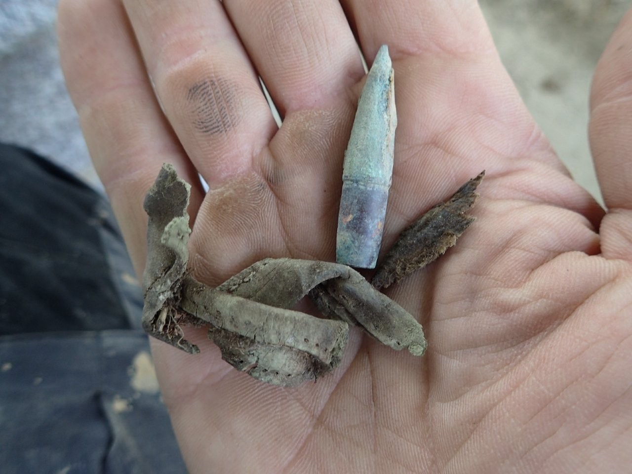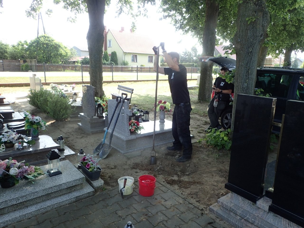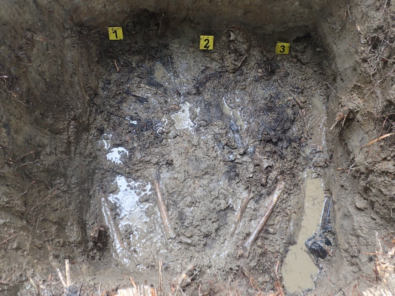 W dniu 8 lipca 2025 r. prowadziliśmy prace ekshumacyjne w Chociszewie, gm. Trzciel (woj. lubuskie). Dzięki relacji świadków oraz materiałom archiwalnym na miejscowym cmentarzu zlokalizowaliśmy grób masowy, w którym pochowano co najmniej dziewięć osób narodowości niemieckiej poległych i zmarłych w 1945 r. Niestety większa część mogiły została już zajęta przez współczesne pochówki. Jednak na dostępnej dla nas przestrzeni udało nam się odkryć szczątki czterech niemieckich żołnierzy, przy których znajdowały się dwa nieprzełamane znaki tożsamości.