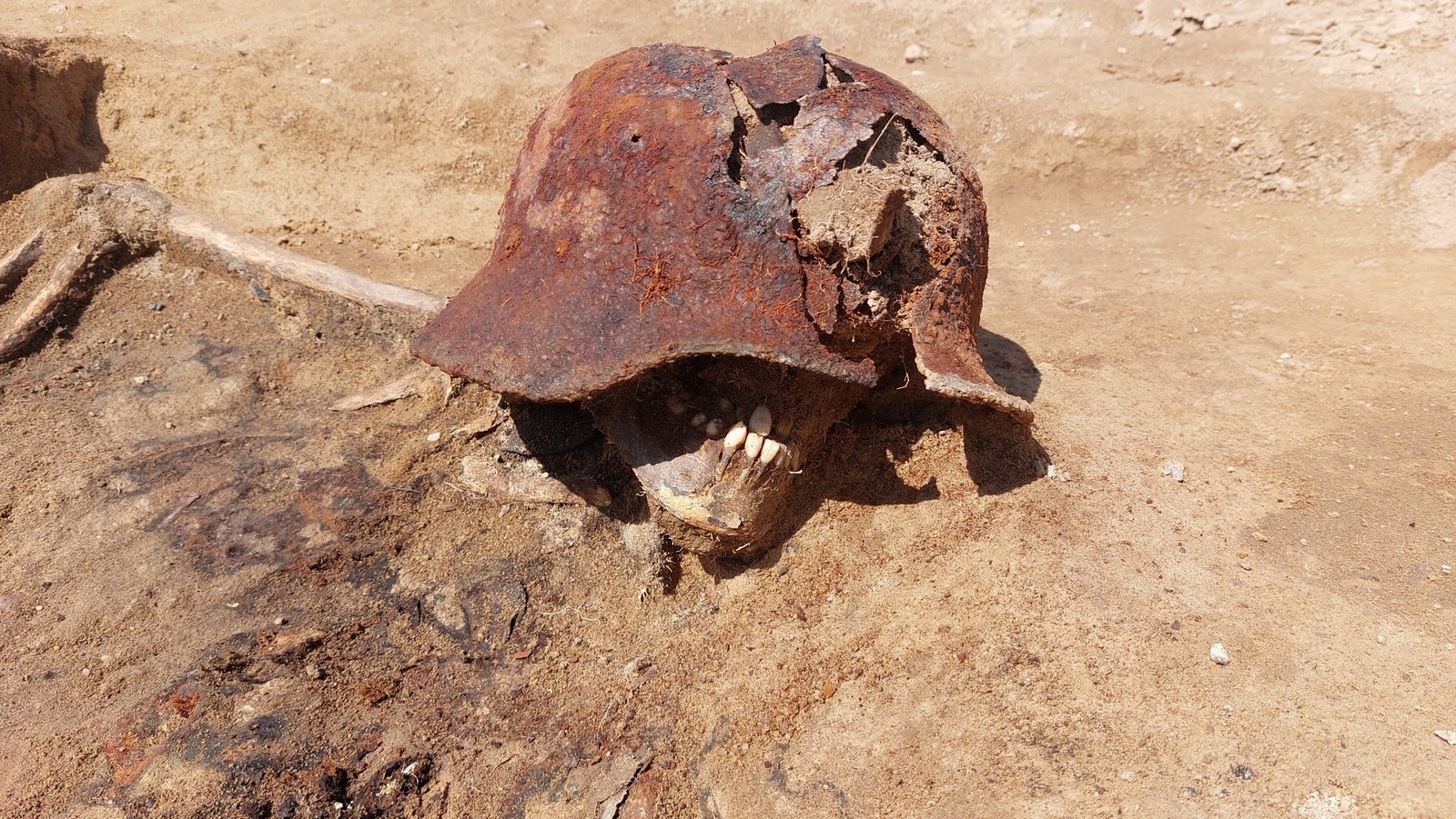 Nauczeni doświadczeniem postanowiliśmy wrócić w to miejsce. Niestety działania prowadzone przez osoby nie posiadające odpowiednich umiejętności i kwalifikacji doprowadziły do pozostawienia w ziemi znacznej części grobu wojennego. Nasze prace, które zostały przeprowadzone zgodnie z metodyką archeologicznych badań terenowych, pozwoliły na odkrycie szkieletów kolejnych pięciu żołnierzy niemieckich, oraz, co najważniejsze, dwóch przełamanych stalowych nieśmiertelników.