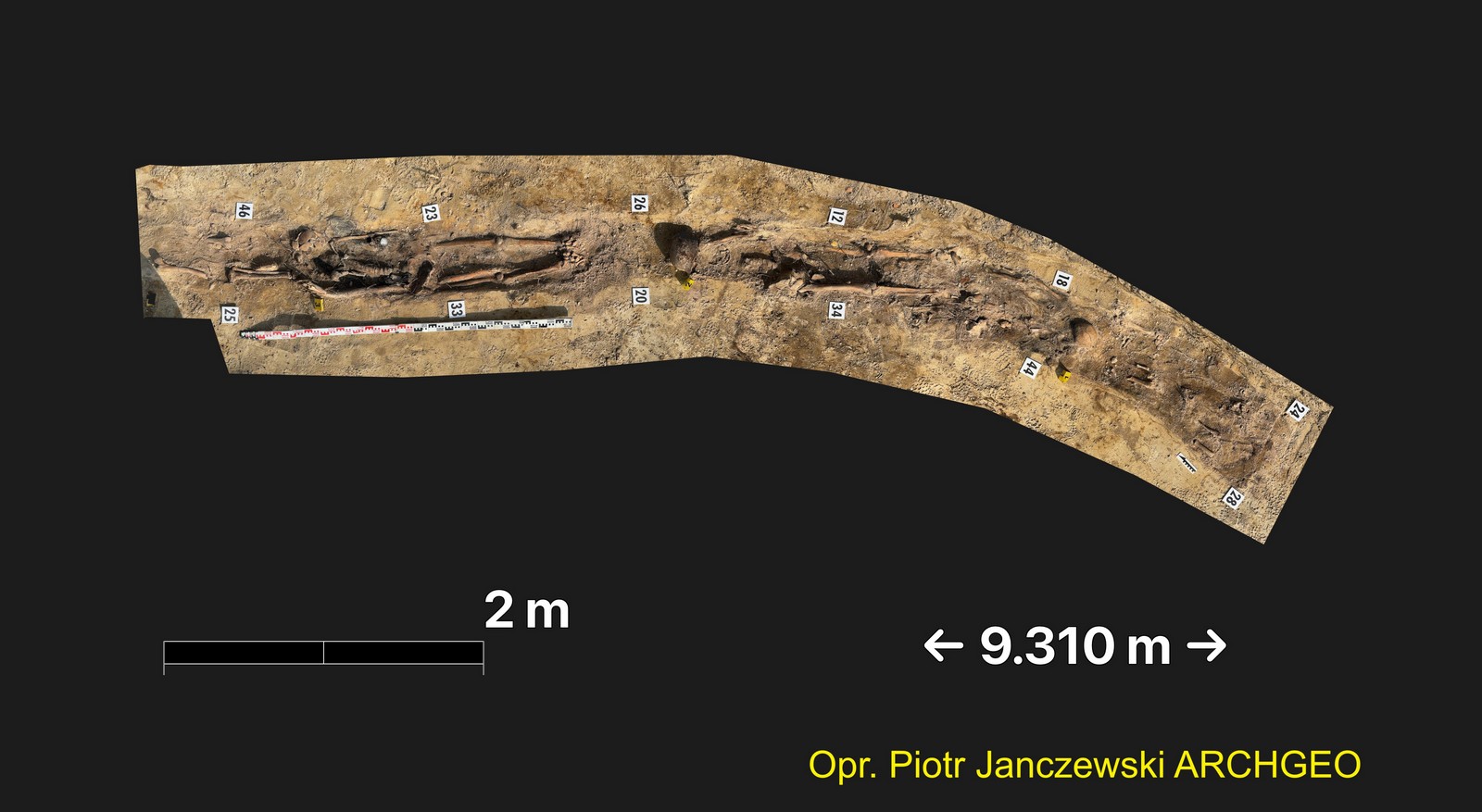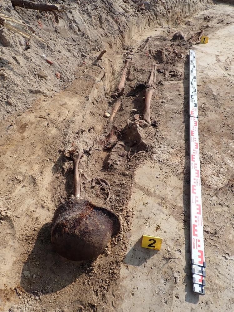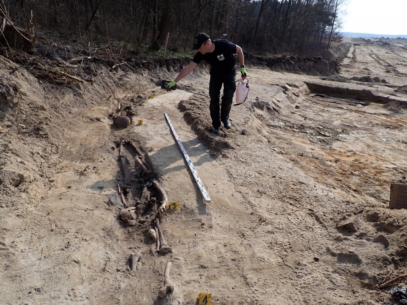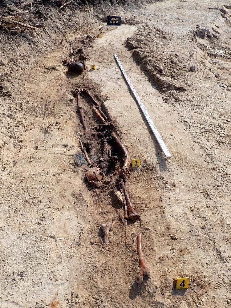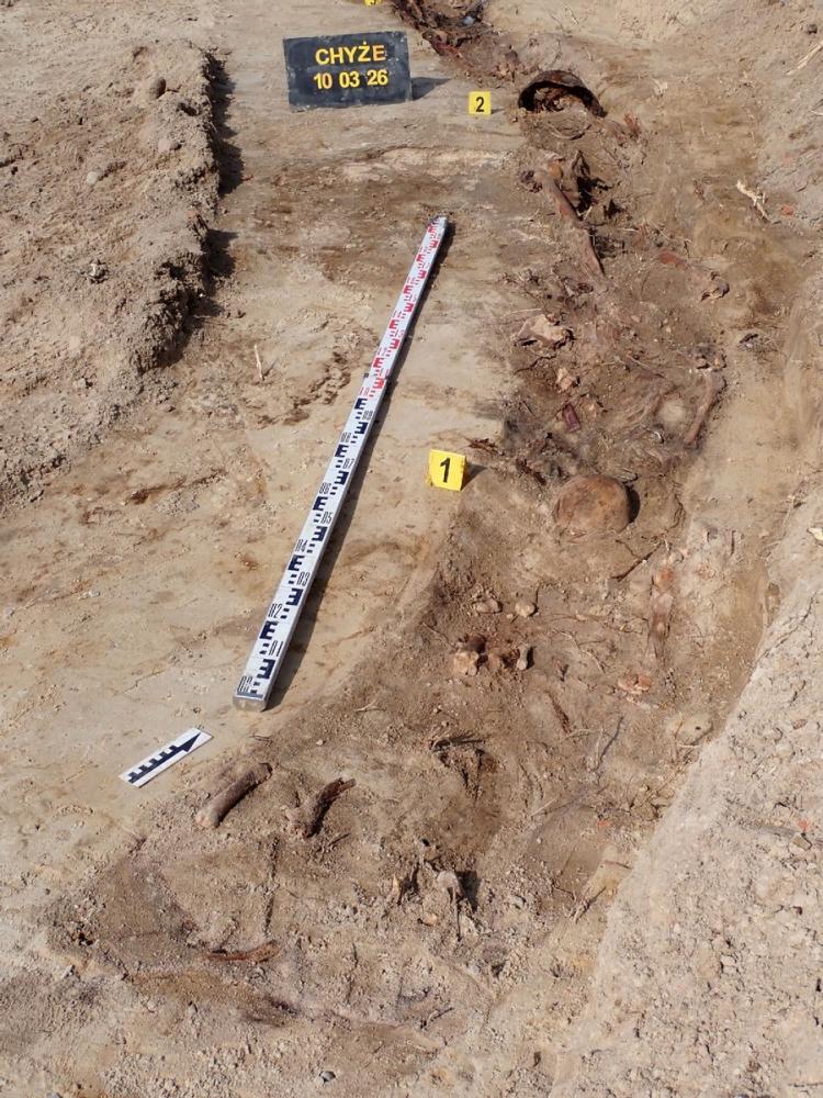 Sprawowanie właściwego nadzoru archeologicznego nad inwestycjami jest niezwykle ważne. Dzięki obecności specjalistów podczas prac ziemnych możliwe jest uratowanie i zbadanie śladów przeszłości. Modelowe postępowanie wszystkich zainteresowanych stron pozwoliło podczas budowy obwodnicy Krosna Odrzańskiego w ciągu DK29 odkryć i zbadać pochówki 7 żołnierzy niemieckich. W obrębie Chyże, na skraju planowanego pasa drogowego, po zdjęciu warstwy humusu ukazał się zarys transzei. W jej wnętrzu natrafiono na silnie przerośnięte korzeniami szczątki ludzkie. W wyniku przeprowadzonych badań archeologicznych odnalezione zostały liczne przedmioty towarzyszące poległym, w tym 4 nieprzełamane nieśmiertelniki. Żołnierze ci zginęli w 1945 roku w trakcie intensywnych walk w okolicach miejscowości Gostchorze. Zostali pochowani najprawdopodobniej przez okoliczną ludność. Ciała zostały zebrane i złożone w płytkim okopie znajdującym się przy nieistniejących już zabudowaniach. Na podstawie odkrytych żołnierskich znaków tożsamości możliwe będzie ustalenie personaliów poległych i zawiadomienie ich rodzin o odnalezieniu bliskich. Za życzliwą pomoc i wzorową współpracę serdecznie dziękujemy firmom archeologicznym „ArchGeo” Piotra Janczewskiego i „Galty” Pawła Micyka.